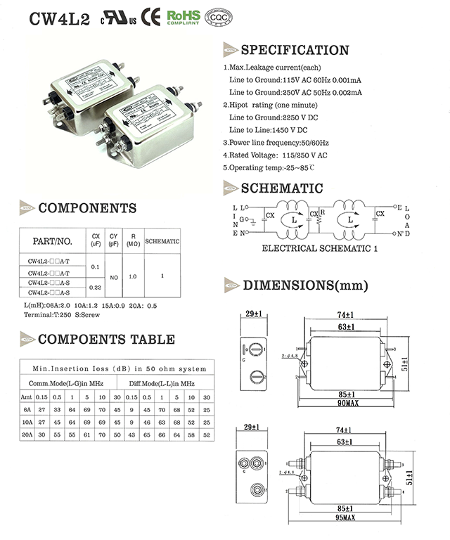 医疗美容设备专用电源滤波器。